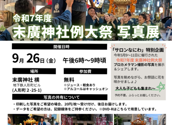 令和7年5月9日(金)~11日(日)は、2年に一度の末廣神社例大祭!! 浪花会の神輿の担ぎ手を大募集中です。お […]